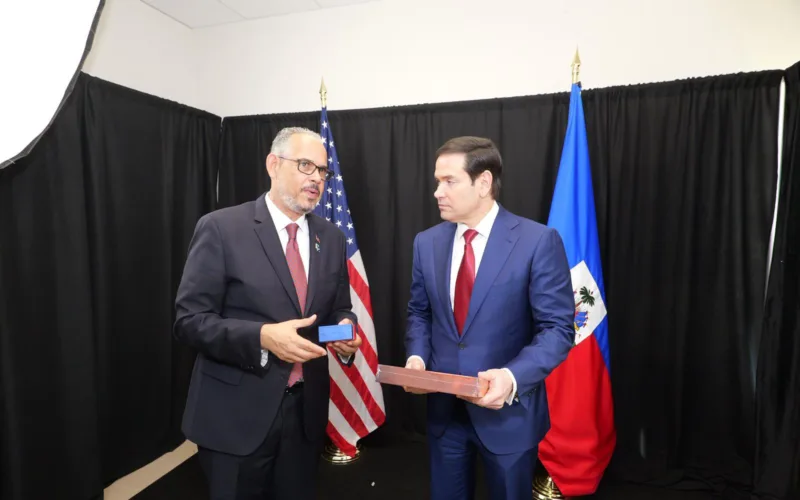 Le Premier ministre Alix Didier Fils-Aimé, a rencontré le mercredi 25 février 2026, le Secrétaire d’État américain, Marco Rubio, en marge de la 50e Réunion de la Caricom, à St Kitts-et-Nevis. Les échanges ont porté sur la sécurité, la stabilité et les élections selon la Primature.