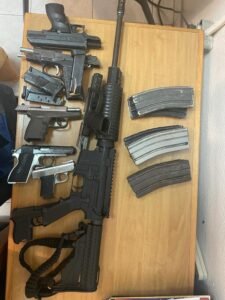 Ils ont été appréhendés en possession de sept (7) pistolets, un fusil AR-15 et quatre (4) gilets par balle, selon une note publiée par la police nationale sur sa page Facebook, précisant que ces individus répondent aux questions des enquêteurs de la police judiciaire avant que leurs dossiers soient transférés à la Justice.
