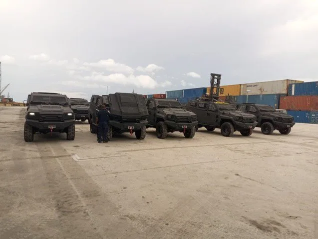 La PNH a reçu, le vendredi 23 aout 2024, 20 véhicules blindés de marque Toyota commandés fin 2023 par le gouvernement du Premier ministre Ariel Henry auprès des Emirats Arabes Unis.