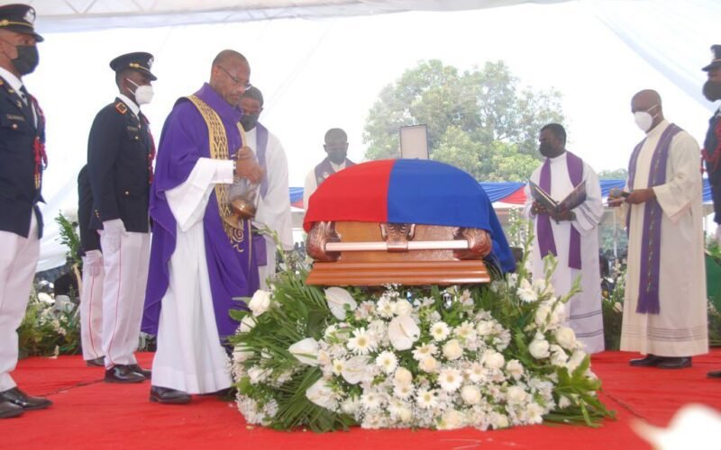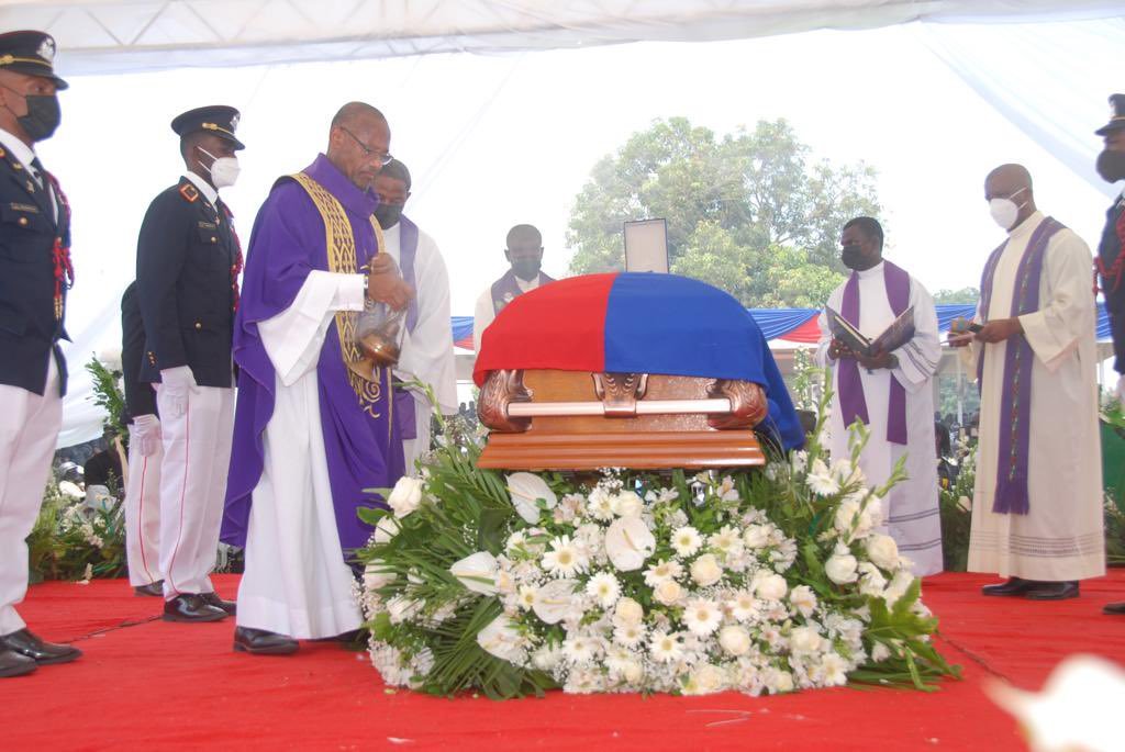 Les funérailles du président Jovenel Moïse ont été chantées ce vendredi 23 juillet 2021 à Madeline, une localité du Cap-Haïtien. La cérémonie s’est déroulée en présence notamment des membres de la famille, des dignitaires du gouvernement et des sympathisants. La délégation américaine conduite par Linda Thomas Greenfield, ambassadrice des Etats-Unis à l’ONU, a quitté précipitamment les lieux.