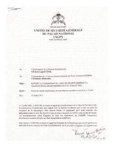 Objet: RAPPORT DU COMMANDANT DE L’UNITÉ DE SÉCURITE GENERALE DU PALAIS NATIONAL SUR LES JOURNÉES DU 6 AU 8 JUILLET 2021