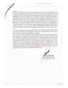 Dans son rapport daté du 10 juillet 2021, adressé au Commissaire divisionnaire, Jean Laguel CIVIL, Coordonnateur de la Sécurité Présidentielle, Dimitri Hérard affirme avoir reçu à 1h39 am, un appel du Président de la République l’informant qu’il est grand danger et de lui envoyer de l’aide immédiatement…