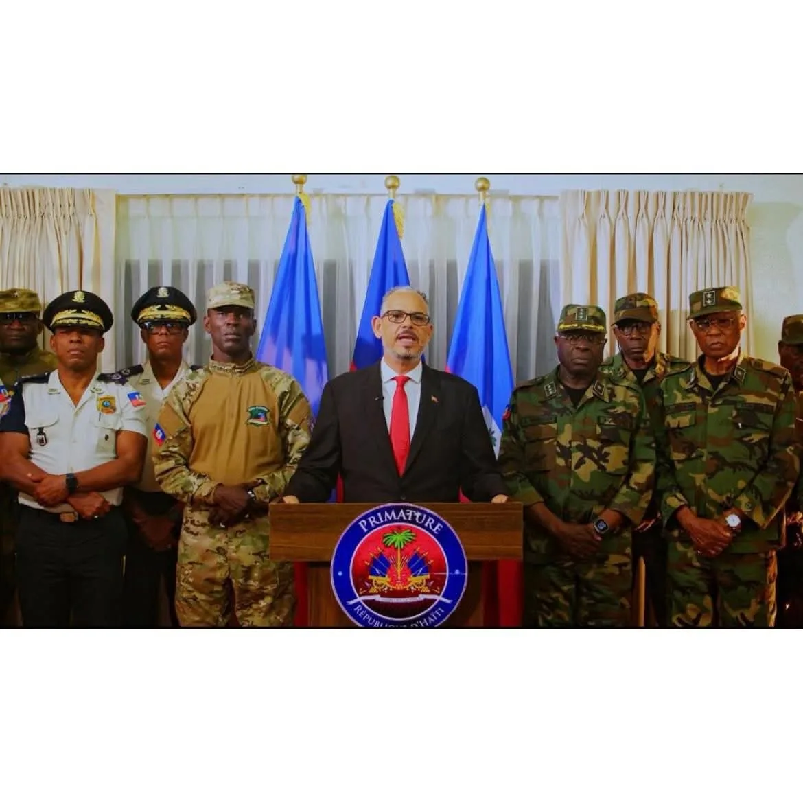 « Les gangs armés et leurs complices seront traqués sans relâche. La Police Nationale d’Haïti (PNH), les Forces Armées d’Haïti (FAD’H) agiront avec rigueur, coordination et continuité, jusqu’à la reprise complète du contrôle du territoire national et le retour de la paix dans les foyers » a garanti le Premier ministre.